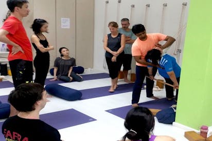 Aside from teaching Iyengar Yoga, Krishna also conducts various yoga therapy classes that specialize in healing for the neck, shoulder, and back, as well as pranayama and meditation.